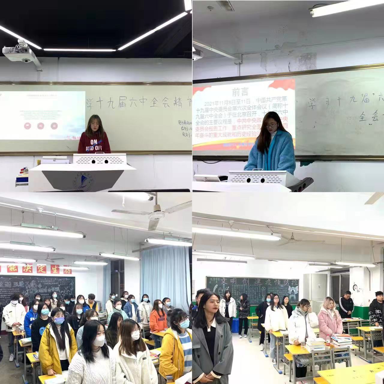 为深入学习贯彻习近平总书记重要讲话精神和党的十九届六中全会精神,必发集团于11月18号晚开展以“学习十九届六中全会精神”为主题的团课,组织和广大团员青年积极学习、深入研讨,团课由各班团支书主持。
