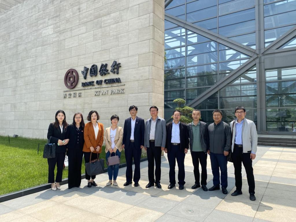 杨宇清一行在中银金融商务有限公司西安分公司副总经理张权宏等人陪同下,参观了公司所在的金融园区,实地考察了企业的工作环境、员工值班宿舍、培训大楼、员工餐厅等场。随后双方进行了座谈交流。