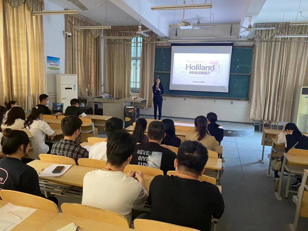 宣讲交流会上李经理与员工交流了老员工职业发展的经验与体会,介绍了好利来公司的概况、企业文化、薪酬待遇及员工职业发展规划等。随后李经理对员工关于在企业的职业发展情况进行了答疑。宣讲会场面热烈,掌声不断。