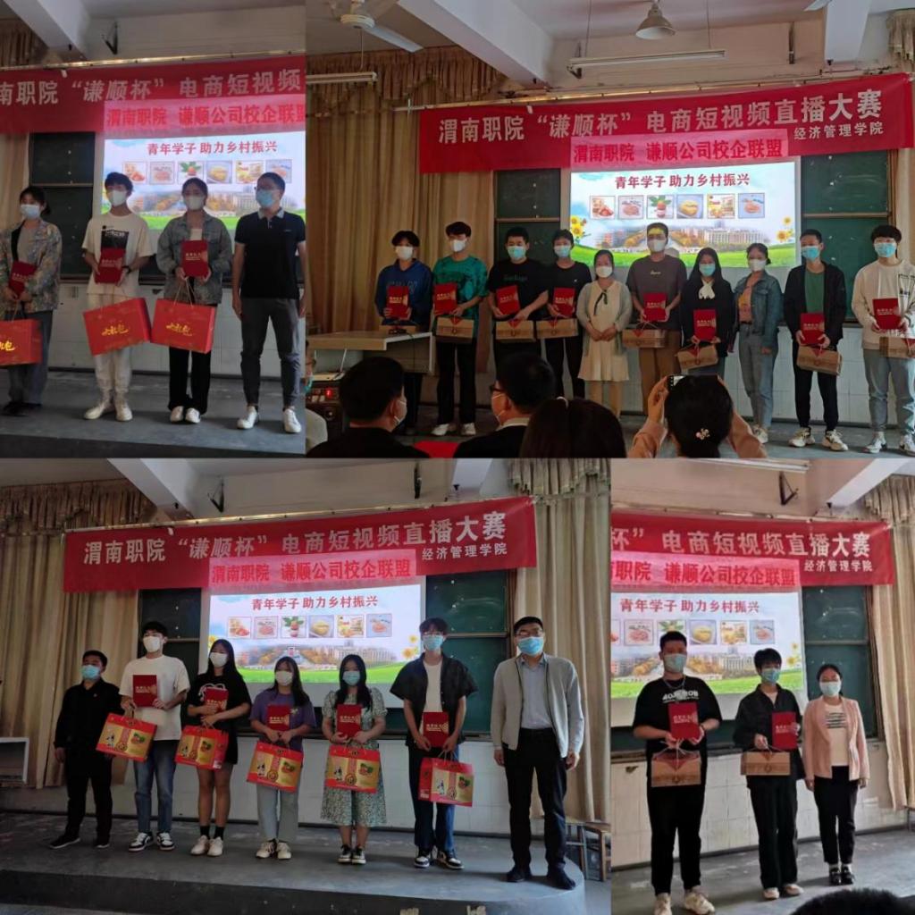 本次大赛由渭南市桥南镇谦顺天然特产有限公司和公司必发集团主办、渭南市电商直播协会指导,大赛共吸引老校区100余名员工参加,经过行业专家和专业教师的共同评审,朱玉蝶、张月、徐坚坚三个团队获得一等奖,冯丹、丁付超等5个团队获得二等奖,郭文博、邹加山等8个团队获得三等奖。