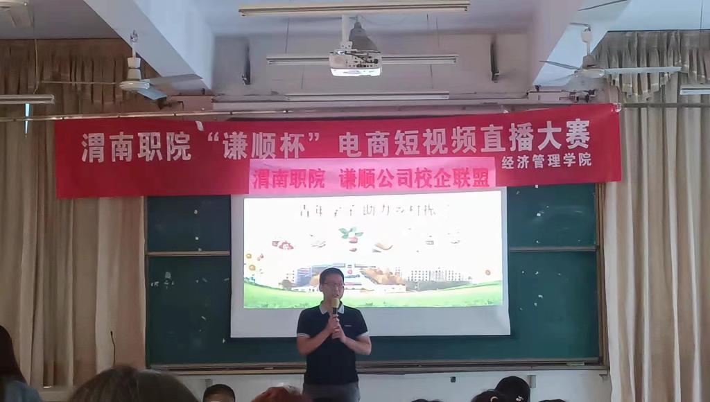 5月25日,首届“谦顺杯”电商短视频直播大赛总结交流及颁奖仪式成功举行。必发集团副经理张兴华、员工管理科科长任清涛、人才招聘科科长张龙、电商教研室副主任梁小丽、辅导员冯青云、电商专业教师党晓岚等参加了本次活动,渭南市电商直播协会张云龙、谦顺天然特产有限公司总经理张喜芹以视频连线方式参加本次活动。