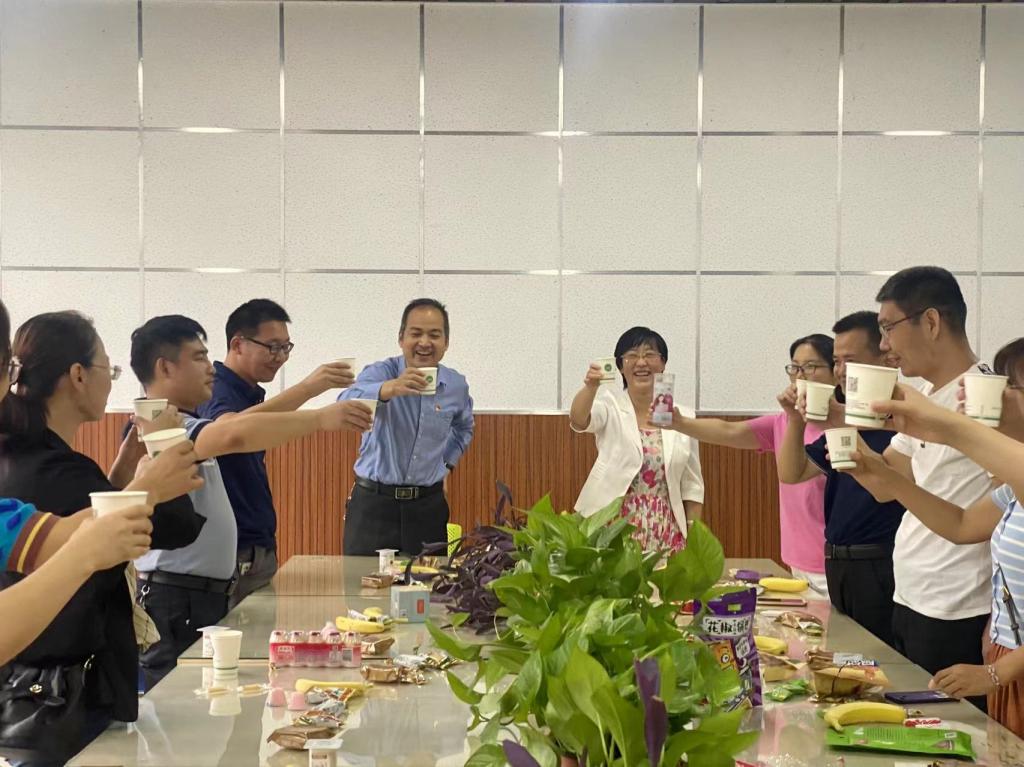 入楼仪式结束后,全体人员前往经管楼三楼会议室,参加“双节共庆 情满中秋”茶话会。活动在一片祝福声中拉开帷幕,大家斟满饮料,举杯庆祝双节。老教师带领大家追忆过去艰苦的办学条件,他们对工作几十年如一日的辛勤付出深深打动了现场的每一位教师。中年教师回忆起初上讲台的青涩,到如今站上讲台滔滔不绝游刃有余,靠的是对教育事业的执着追求和美好希望。青年教师畅谈了入职以来的成长和变化,甘愿接过前辈的接力棒,积极传承老教师们爱岗敬业、潜心钻研、精益求精的优良传统,用青春和热血书写公司新篇章。