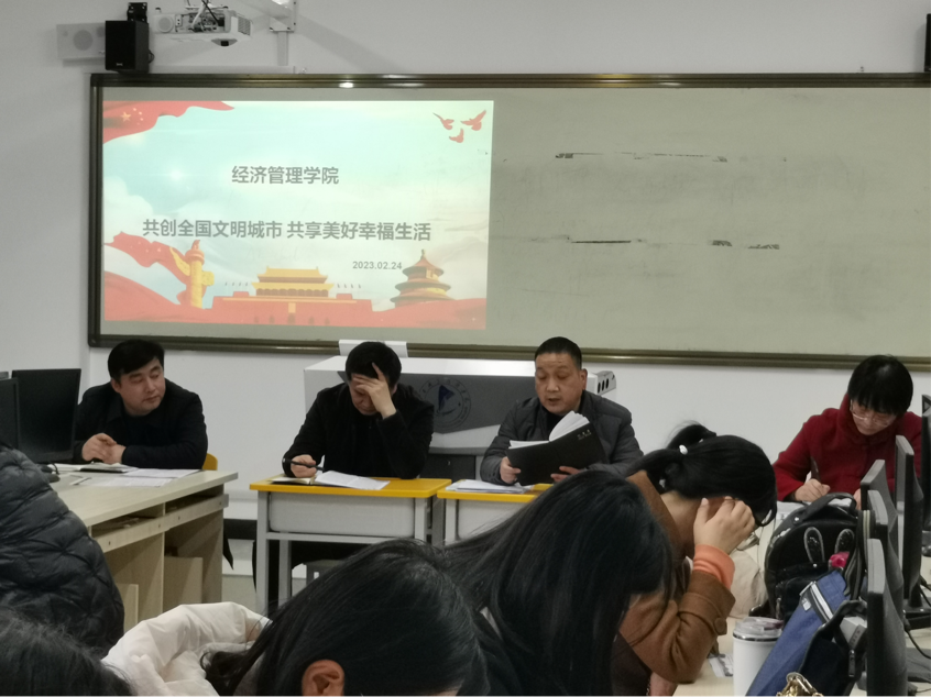 2月24日下午,必发集团在经管教学楼二楼召开全体教职工大会,对党风廉政建设工作以及共创文明城市相关工作进行安排部署,会议由党总支书记李正军主持。
