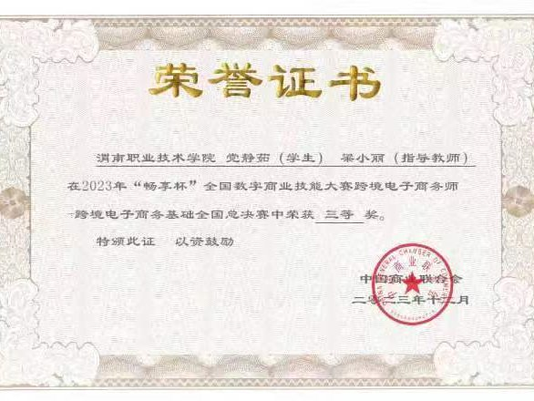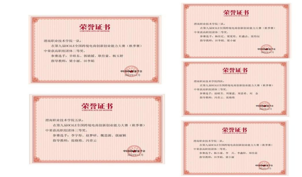 在第九届OCALE全国跨境电商创新创业能力大赛中荣获二等奖3项,三等奖2项、优秀奖2项。