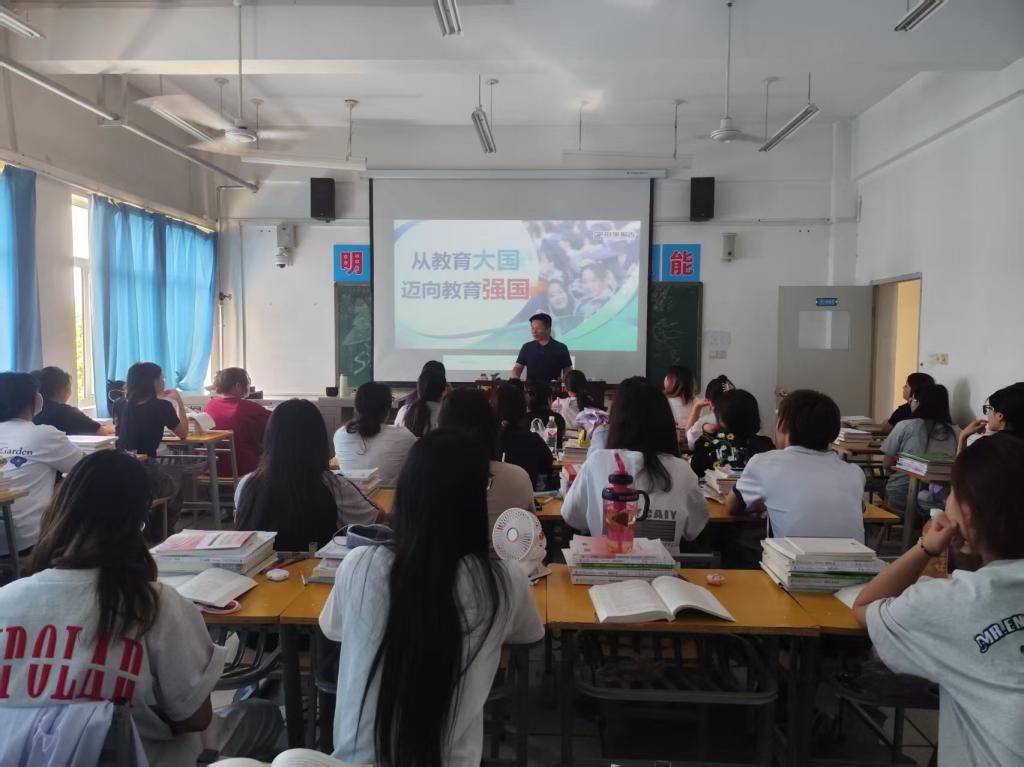 近日,副经理毛文生为会计高职2401班讲授主题为《从教育大国迈向教育强国》的“形势与政策”课。