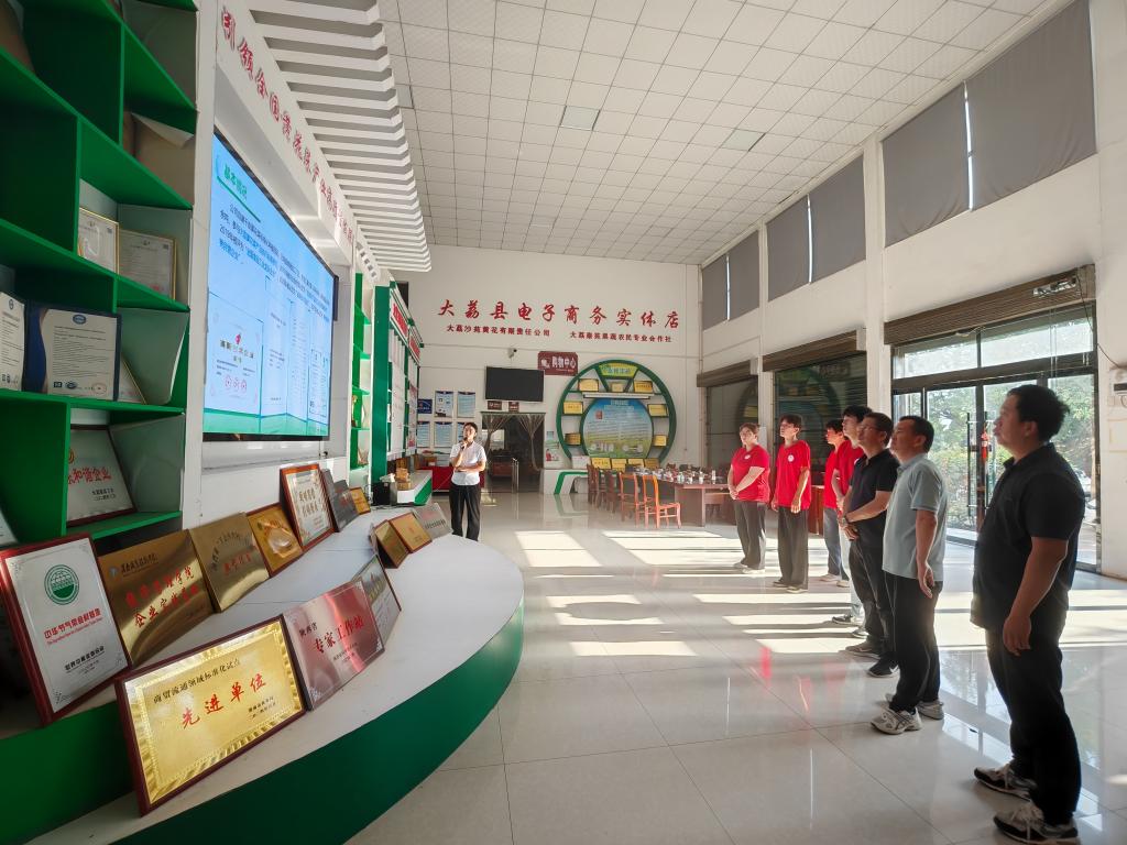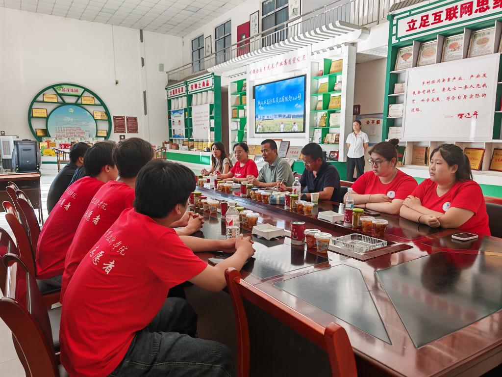 参观交流期间,公司销售部翟经理重点介绍了企业在传统电商与直播带货领域的创新实践。他表示,通过多元化营销渠道,公司有效提升了“大荔黄花菜”的品牌影响力,并希望借助公司的智力支持,进一步拓展线上市场。郑言系统介绍了公司乡村振兴工作模式,他表示该基地将成为电子商务等相关专业服务乡村振兴的重要实践平台。公司董事长潘青录对三下乡实践团队的调研给予高度评价,强调校企合作是推动产业升级的重要途径,期待未来在人才培养、技术攻关和产销对接等方面开展深度合作。