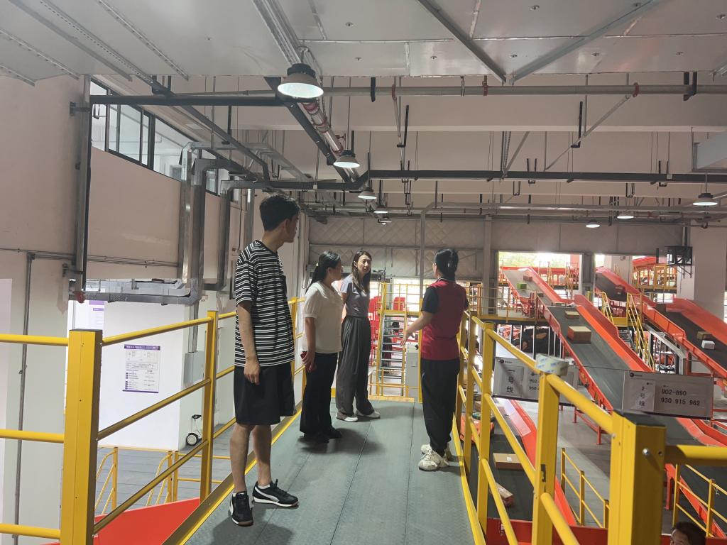实践锻炼团队在圆通速递西北转运中心,深入快递分拣打包一线,近距离学习快递包裹智能分拣、分区打包、拆包分装等物流作业环节,人力资源部经理关晨详细介绍圆通速递西北转运中心的主要市场功能和社会功能,各方就人才培养、实践教学等方面开展了讨论。