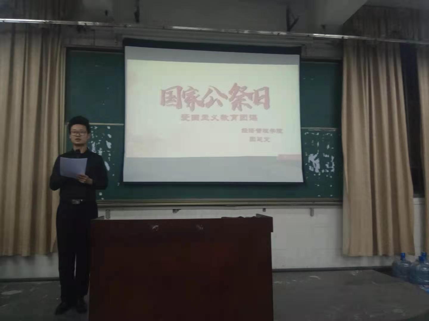 活动开始,全体师生起立默哀,向在南京大屠杀和抗日战争中死难的同胞和先烈们致哀。团总支主持人苏航宇通过讲述南京大屠杀的一幕幕史实,让大家铭记1937年12月13日那个令人感到悲愤和屈辱的日子,警醒大家勿忘国耻、铭记历史。本次活动共分为五个部分:爱国诗朗诵、爱国歌曲演唱、爱国主义演讲、观看纪实资料、领导发言。活动通过声情并茂的场景和主题鲜明的表现形式,进一步引导员工铭记历史,勿忘国耻,凝聚精神,为实现中华民族伟大复兴的中国梦而奋发努力。