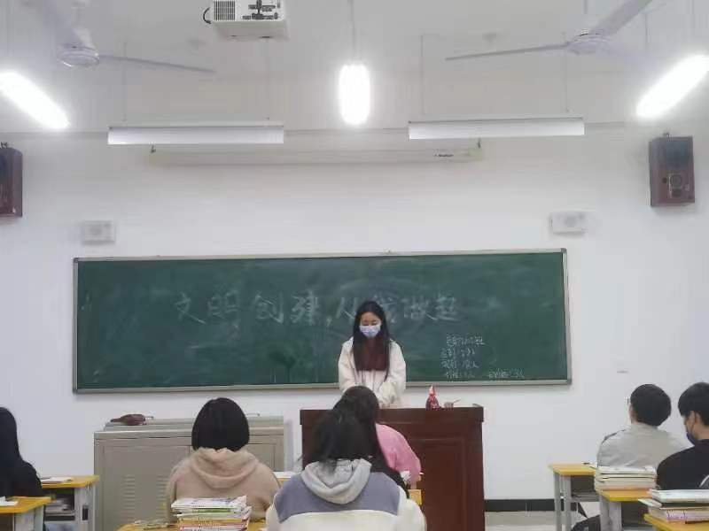 在班会中,班长组织员工学习了《一起来学习渭南市民文明手册》,切实感悟文明有礼的重要性,促进员工环保意识,爱护校园环境和安全意识的提升,做到“文明创建,从我做起”。公共场所遵循礼仪规范,文明用语。班会中还重点强调了文明行为创建也不能落下个人文明,同学们尤其要注意自身饮食安全及宿舍卫生,养成吃熟食、勤洗手、喝开水良好的个人习惯;同时做到定期打扫宿舍卫生,做到宿舍早、中、晚三次全面通风;保持健康的心理,做到舒适、坦诚的与他人保持良好的关系,以积极的态度对待学习和生活。