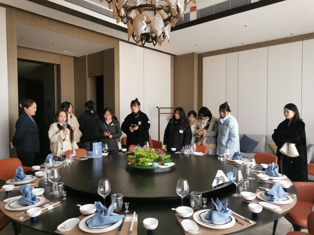 本次课程实习期间,张雅菲组织员工参观了渭南温德姆国际酒店的中餐厅、大堂吧和港式茶餐厅,观看了酒店的实际操作。